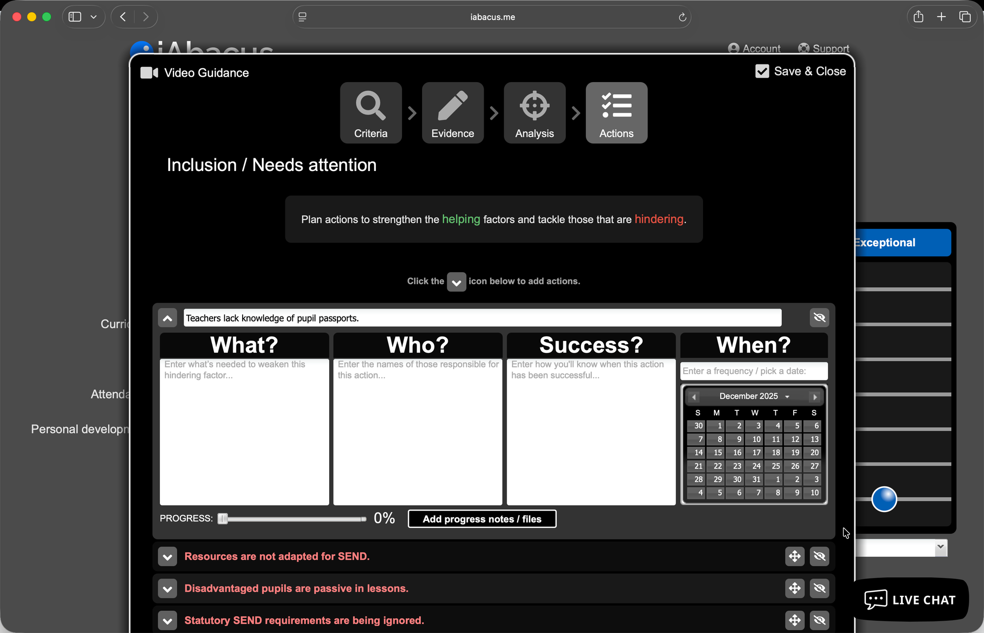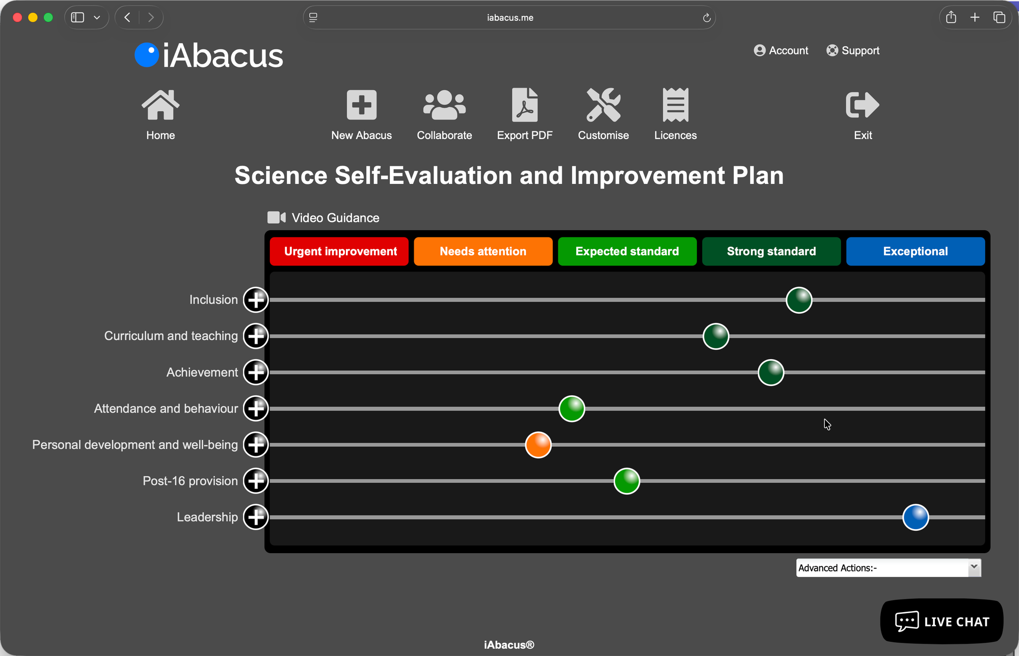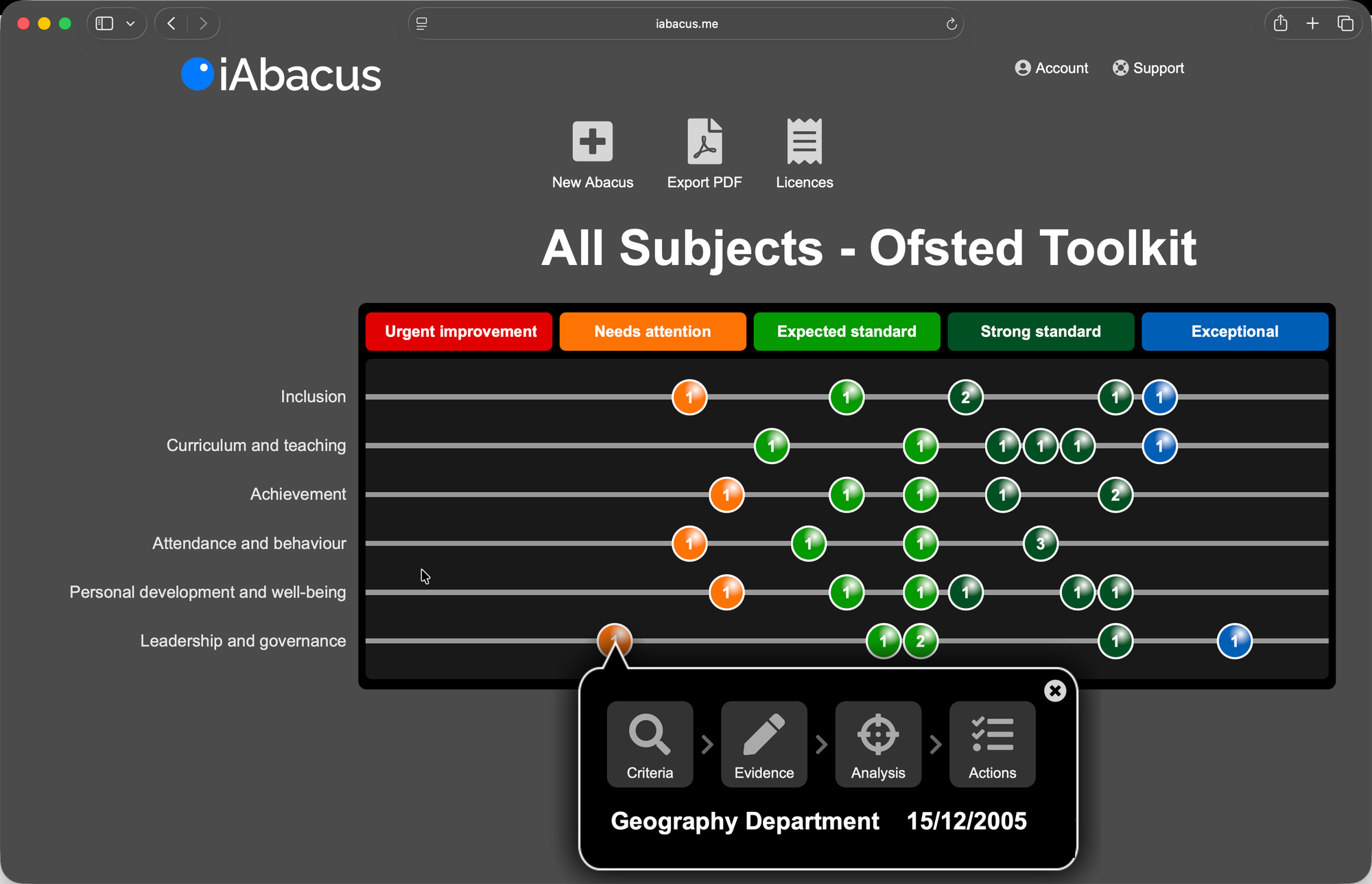 And because everything sits within the same abacus, you can revisit later, move the bead if practice has improved, and see the journey for each subject department over time.