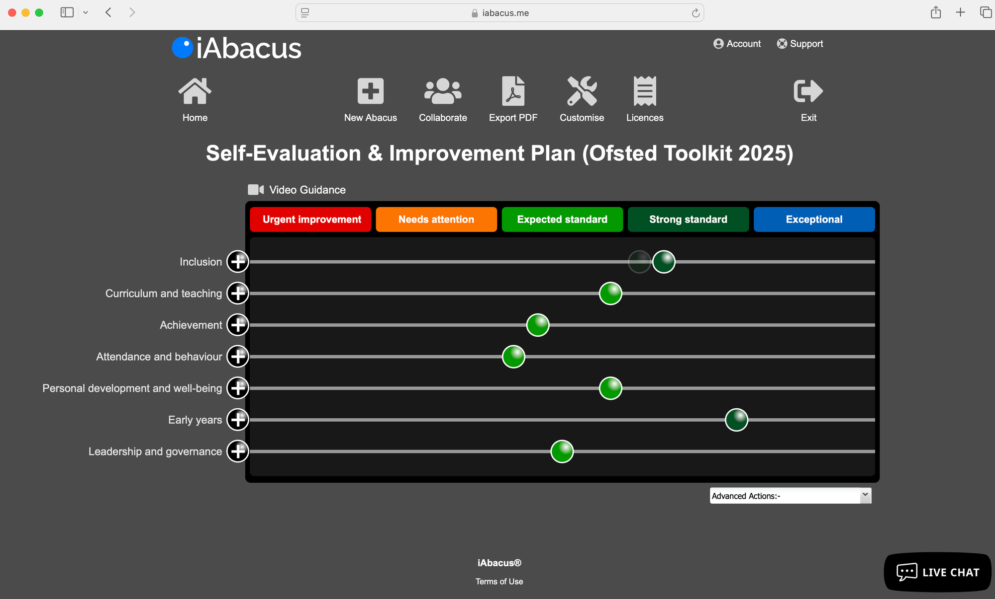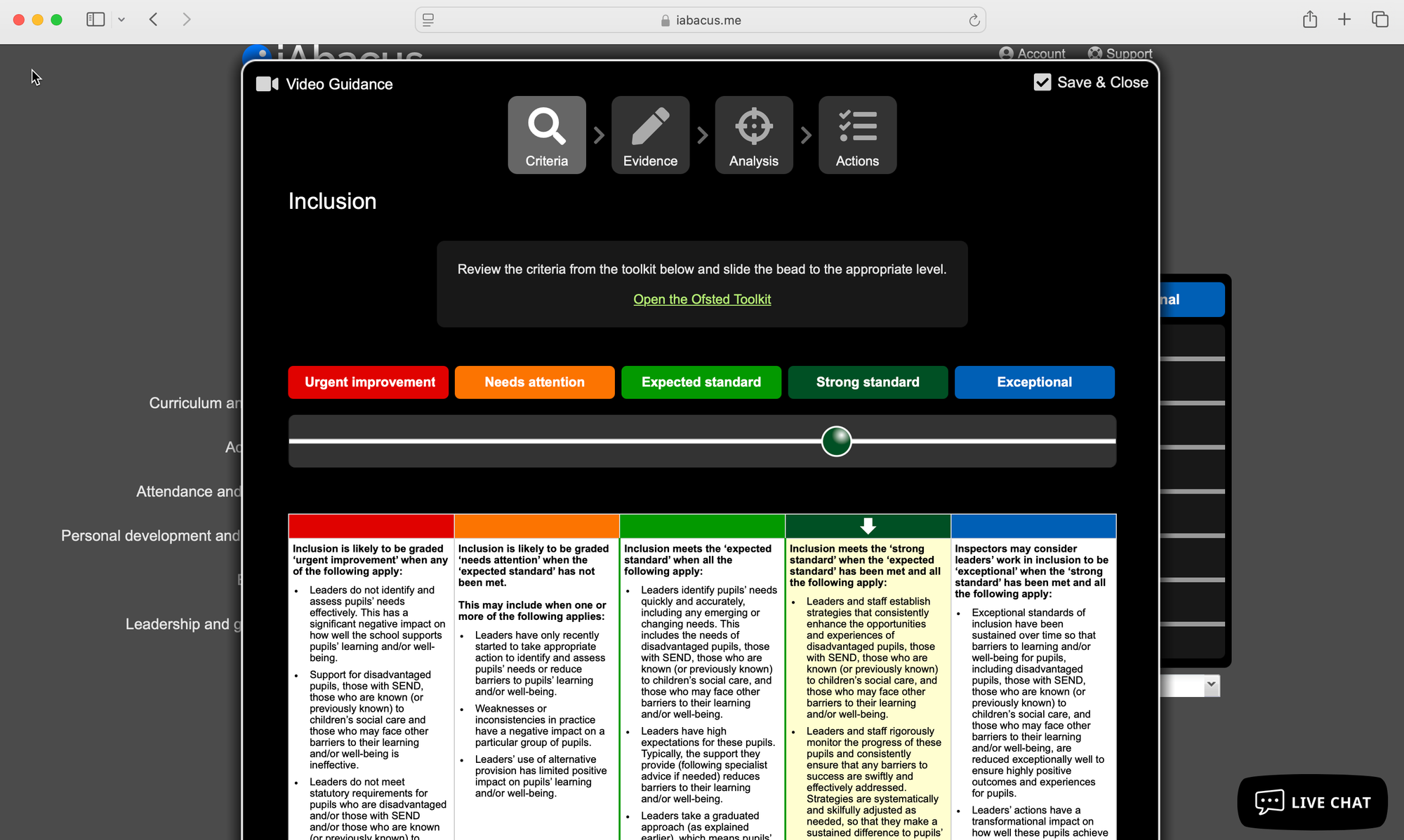 You slide the bead based on your understanding. Then, iAbacus provides the structure – often through ready-made templates aligned to frameworks like the Ofsted toolkit – to help you rigorously verify that judgement against criteria and back it up with concise evidence.